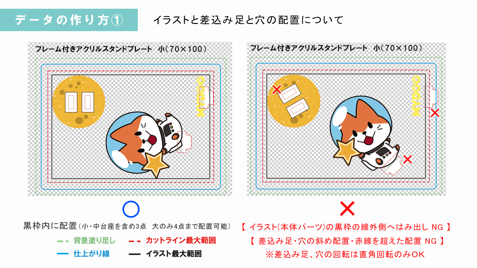 そのまま飾っても可愛いフレーム付き。白版・カットライン・背景くり抜き、全部不要!弊社おまかせで簡単にフレーム付きアクリルスタンドプレートがつくれます!